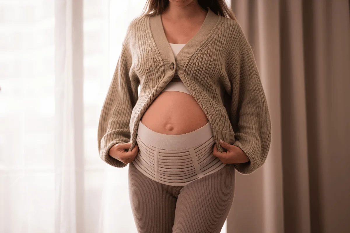 A belly band (or maternity support belt) is a stretchable garment designed to support your growing belly and reduce pressure on your lower back and hips. Many women find it helpful from the second trimester onwards, especially when standing or walking for long periods.